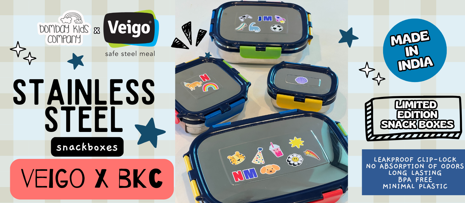 Veigo Jumbo Stainless Steel Lunch Box (with inner veg box) - Navy Blue | Rainbow Limited Edition