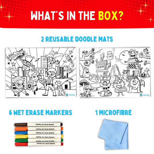 PEPPLAY RECOLOURABLES COLOUR & WIPE PLACEMATS - SUPER POWER