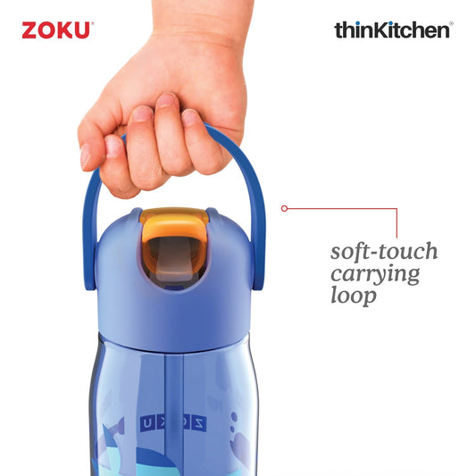 thinKitchen™ Zoku Kids Flip Straw Bottle, Blue, 415 ml