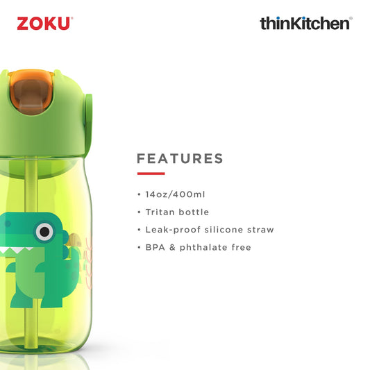 thinKitchen™ Zoku Kids Flip Straw Bottle, Green, 415ml