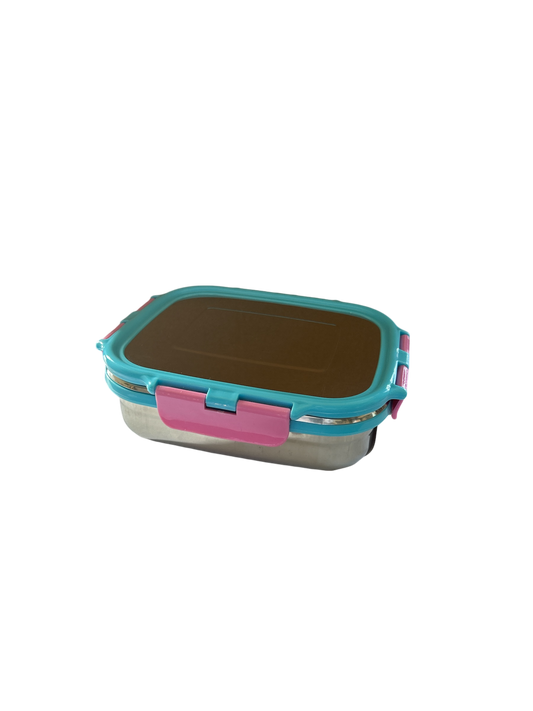 Veigo Medium Stainless Steel Snacks Box - Aqua Blue + Pink | Limited Edition