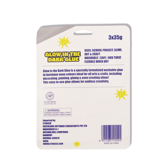 Stikeeze Glitter Glow in the Dark Glue | Set of 3 | 35gms