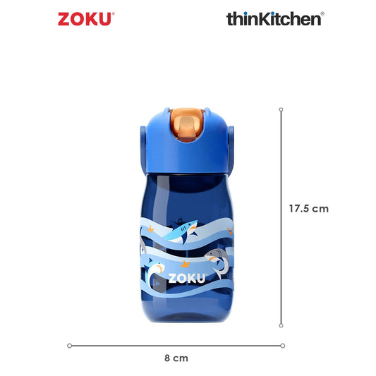 thinKitchen®Zoku Blue Shark Flip Straw Kids Bottle, 415 ml