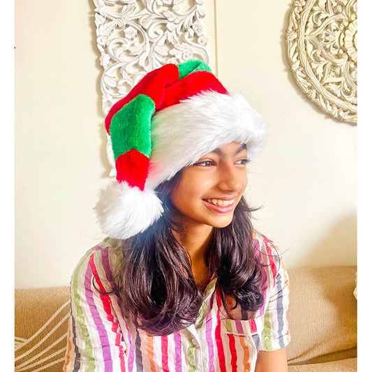 Green & Red Stripes Furry Velvet Christmas Party Hat