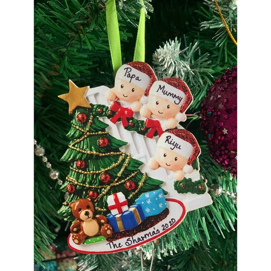 Personalized Wooden Family Tree Ornament (Family of 3)
