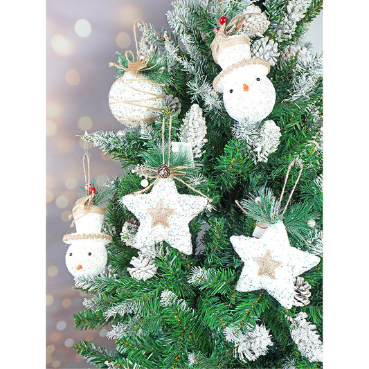 5 pcs Double Glitter Jute themed Christmas Tree Ornaments