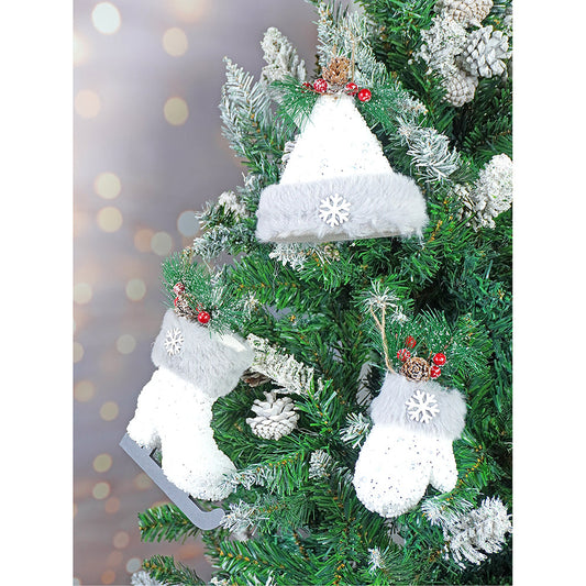 3 pcs Silver Furry Winter Accessories themed Christmas Tree Ornaments