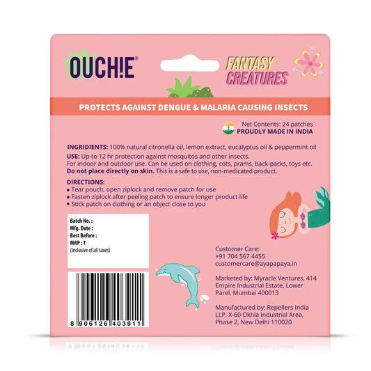 Ouchie Fantasy Creatures Print Mosquito Repellent Patches 100% Natural (24 Patches)