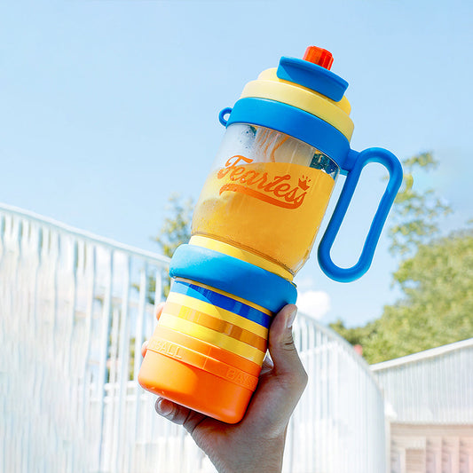 Blue Orange 4 in one Water Bottle , infuser & mini snack box for teens and Adults, 1000ml