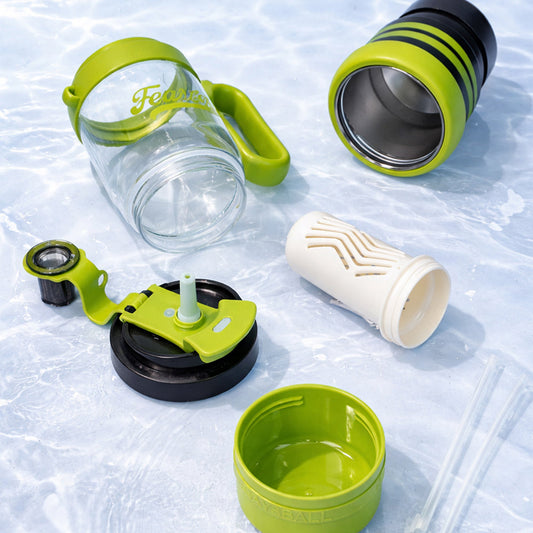 Green Black 4 in one Water Bottle, infuser & mini snack box for teens and Adults, 1000ml