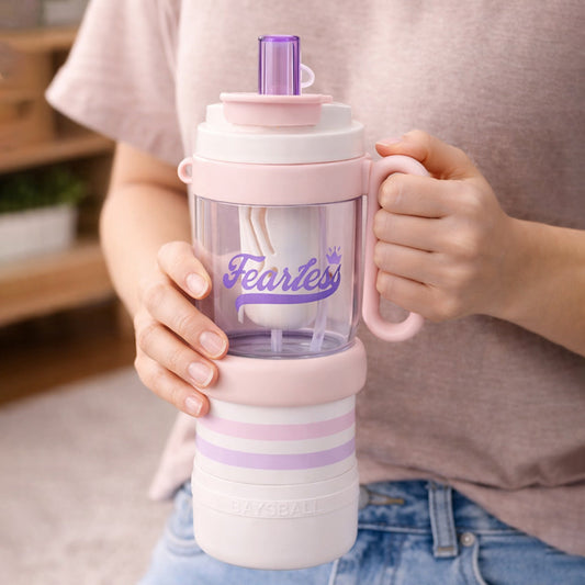 Pink White 4 in one Water Bottle , infuser & mini snack box for teens and Adults, 1000ml