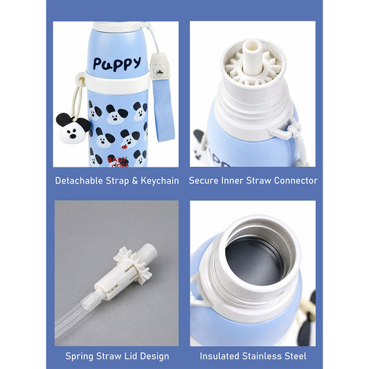 Blue Puppy Stripes Cap Series, Stainless Steel Kids Water Bottle , 520ml