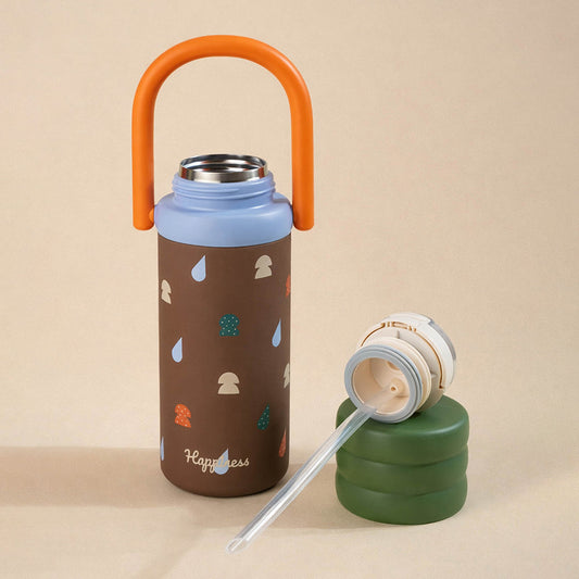 Brown Gift Stamps soft silicone handle series, Stainless Steel Tumbler and Water Bottle for kids, Teens and Adults, 650 ml