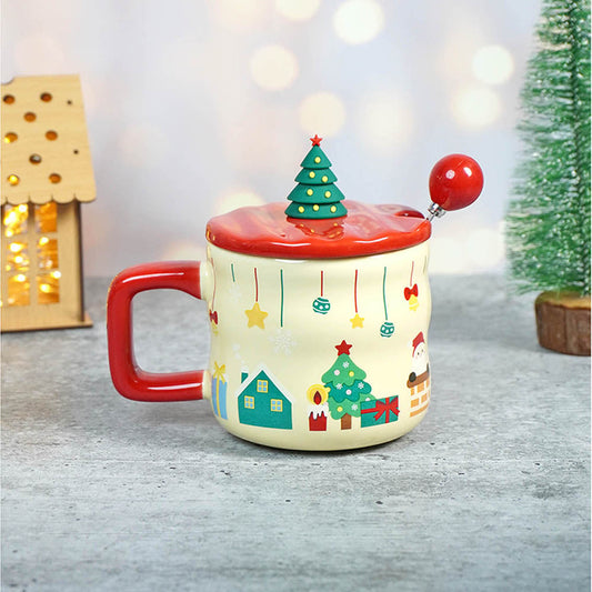 Chimney Santa themed Christmas Mug with 3d christmas tree Lid and Stainless Spoon.