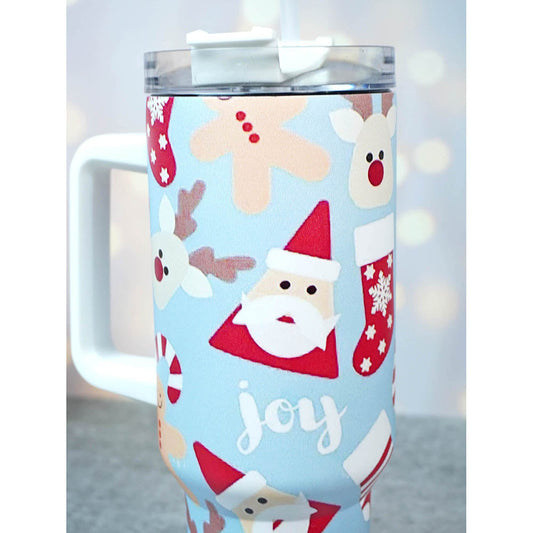 Light Blue Christmas themed vacum insulated stainless steel Tumbler with lid and straw, 1 litre