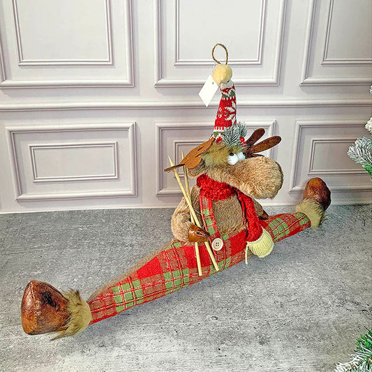 Grey Sitting Long Legs Reindeer with Ski Boards Christmas décor