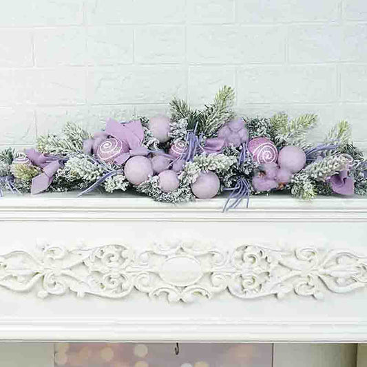 Pastel Purple Swirl Snow Frosted & Ornament Fillers Bushy Christmas Centre table Garland for Christmas Décor, 2 feet