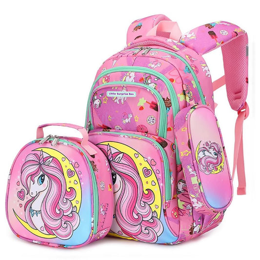 Little Surprise Box,3pcs Moonlit Unicorn Matching Backpack,Lunch Bag and Stationery Pouch,5yrs - 9yrs