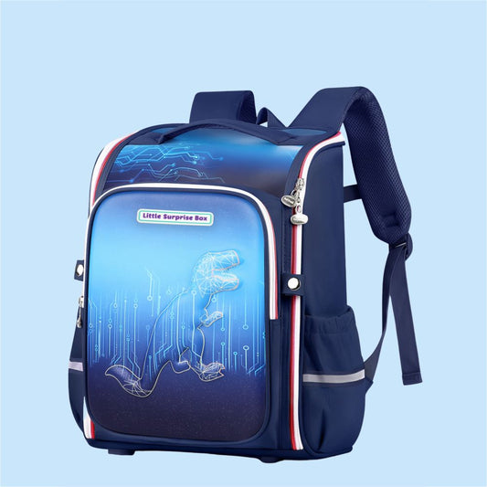 Little Surprise Box, Shimmer Geometric Blue Dino School Backpack for Kids, 6 yrs - 10 yrs