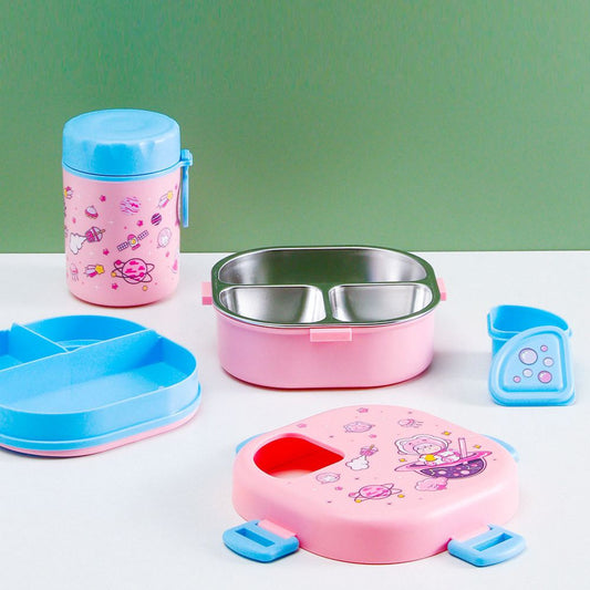 Little Surprise Box, Pink Space Slice 2pcs, Stainless Steel Soup Box and Lunch Box with Bag for Kids