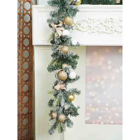 Gold & White Swirl themed Bushy Christmas garland with Bows,Gift Boxes,Cotton flower fillers,6.5 feet