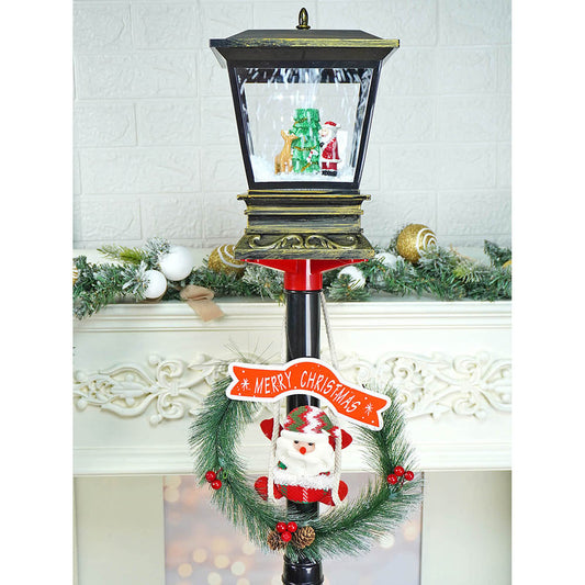 56 inches Santa, Tree & Snowman Black Lamp Post and Snow Globe christmas Décor