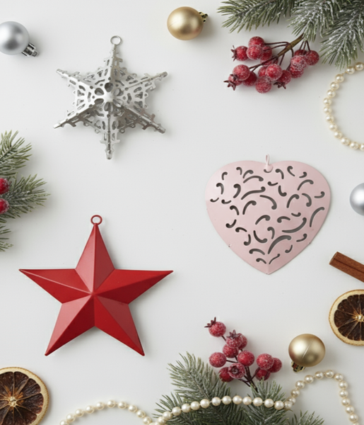 FLORIN by SWEN, pack of 3 metal Christmas tree ornaments - Star, Snow flake, Heart