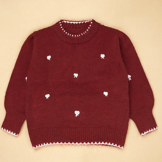 Maroon Mini Bows Knitted Cardigan, Christmas Winter Sweater for Kids