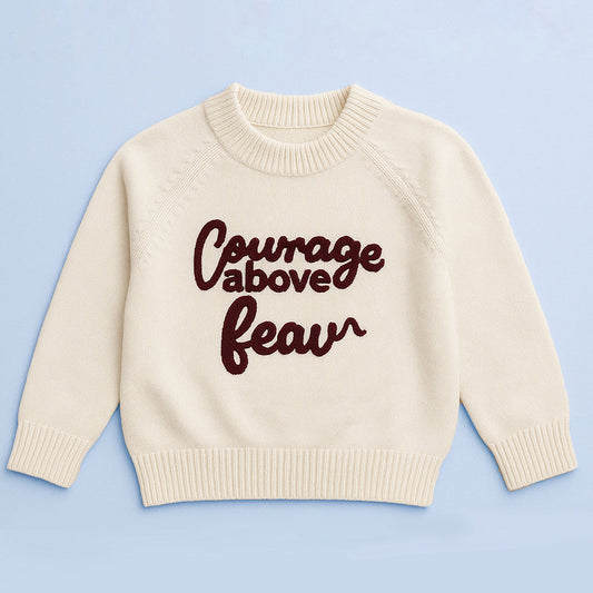 Cream Courage Above Fear Warmer Cardigan, Christmas Cardigan Winter Sweater for Kids
