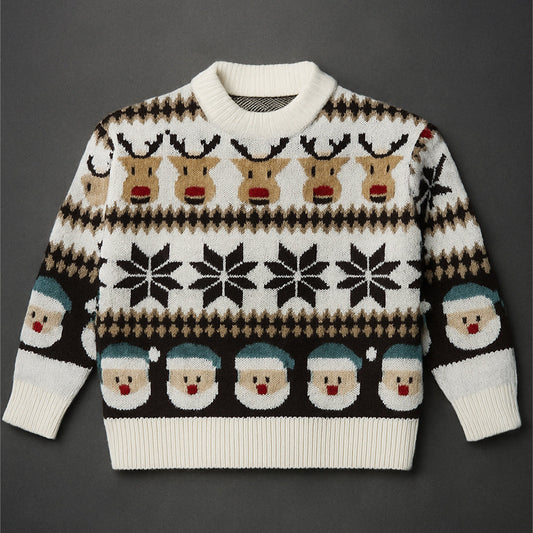 Cream Santa & Reindeer Winter, Christmas Cardigan Sweater for Kids