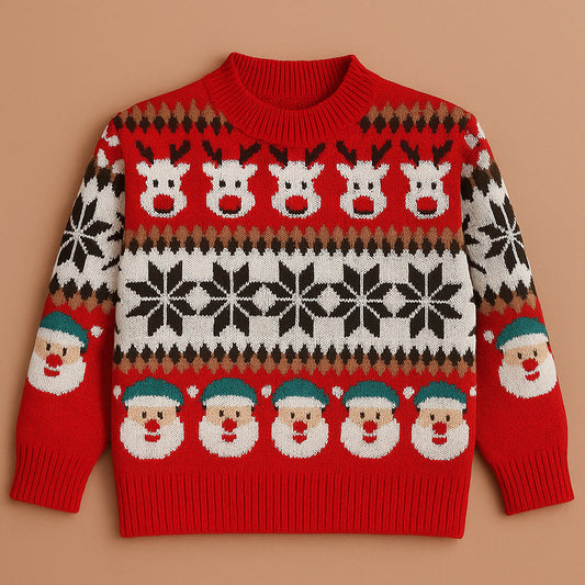 Red Santa & Reindeer Winter, Christmas Cardigan Sweater for Kids