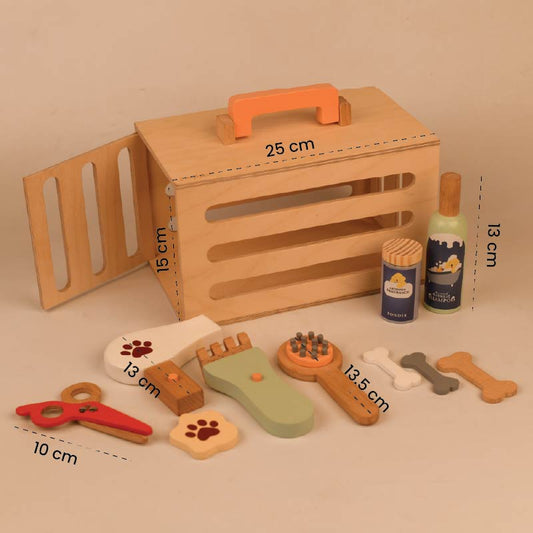 PlayBox Pet Grooming Play Set Wooden Toy | Pretend Play Toddler & Kids Baby Toys