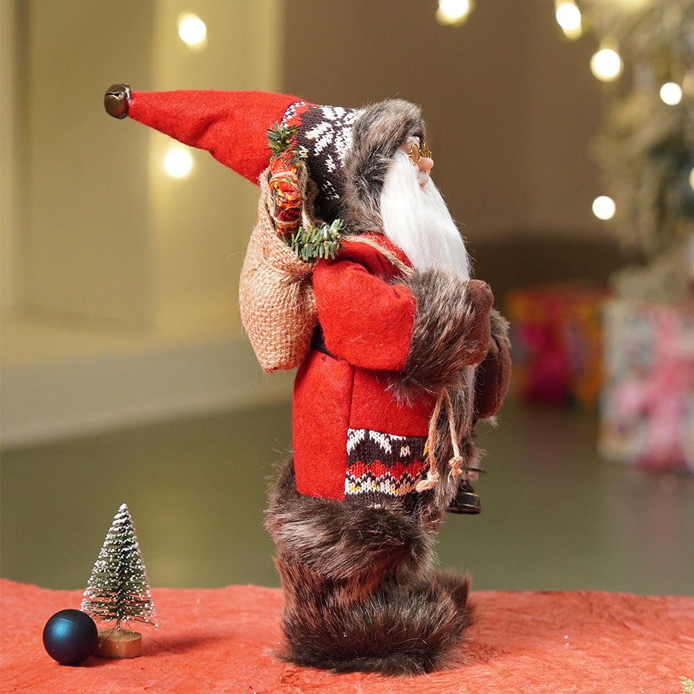 1. Exclusive Design: This charming Santa, dressed in a rich maroon coat with thick grey faux-fur trims, adds a warm and rustic festive touch to your décor. His warm expression, golden glasses, and long white beard create a cozy woodland charm that fits beautifully into any holiday display.