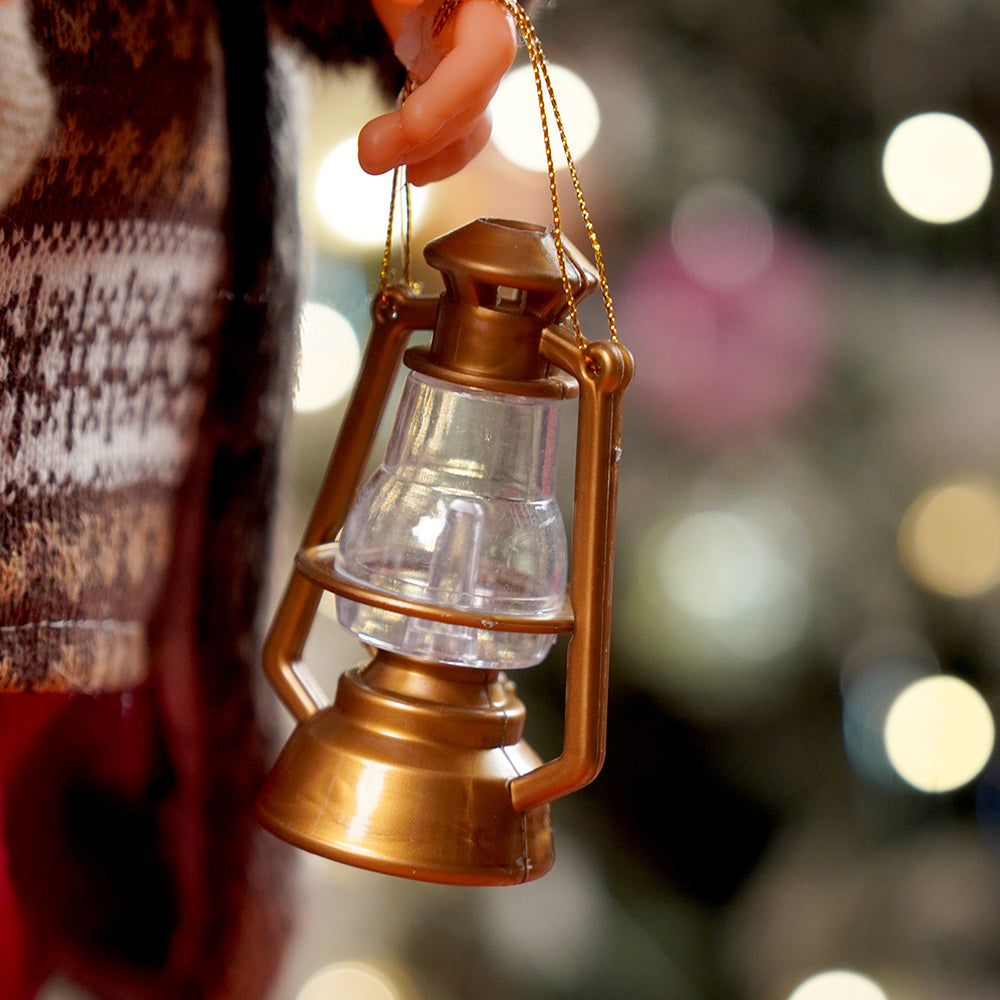 2. Detailing: Styled with soft faux fur detailing, knit textures, and rustic elements,this Santa holds a golden lantern in one hand and a burlap sack filled with pine branches, berries, and holiday ornaments in the other, symbolizing light, warmth, and the joy of giving.