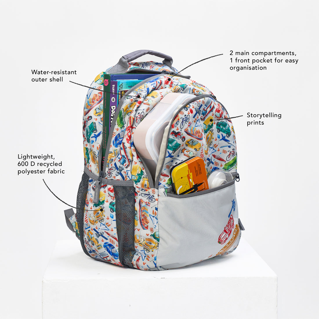 Take me on school runs, mini getaways, or long trips. With ten handy compartments, you’ll never run out of space. Pack clothes, books, snacks, and even a game for camp nights.