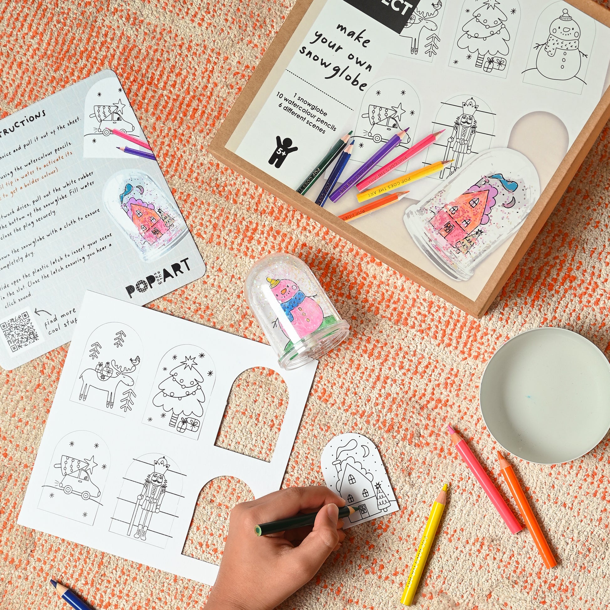 This crafty project allows you to choose and colour your favourite christmas scene for your Snowglobe. Once done, you can fill water and insert the coloured scene. The snow, the tinsel and the magic of Christmas all in the palm of your hands!