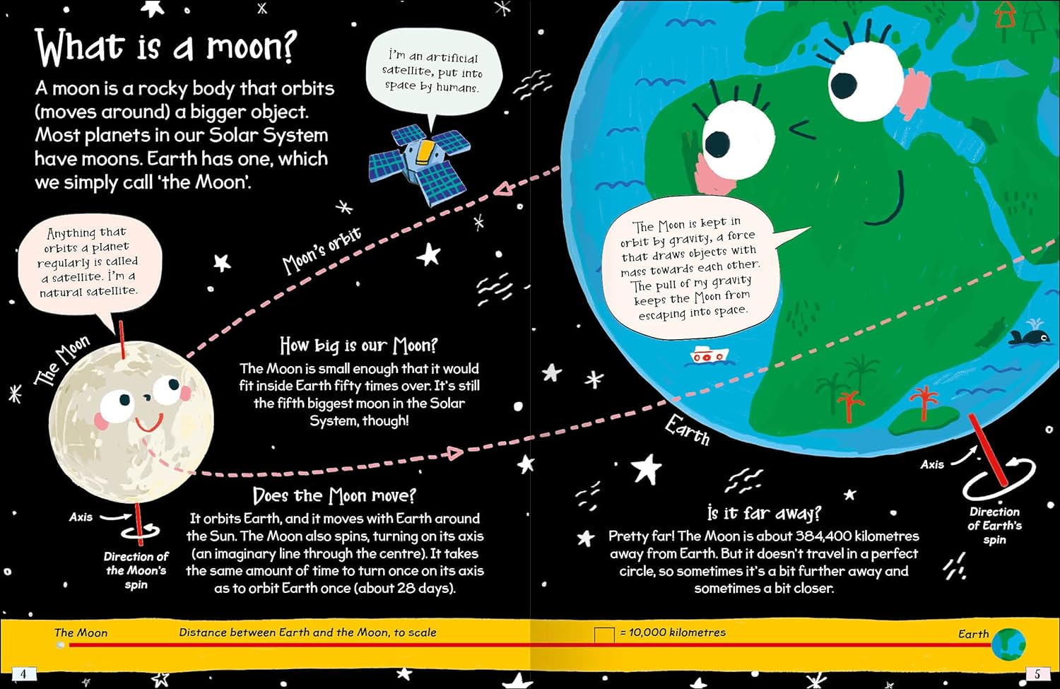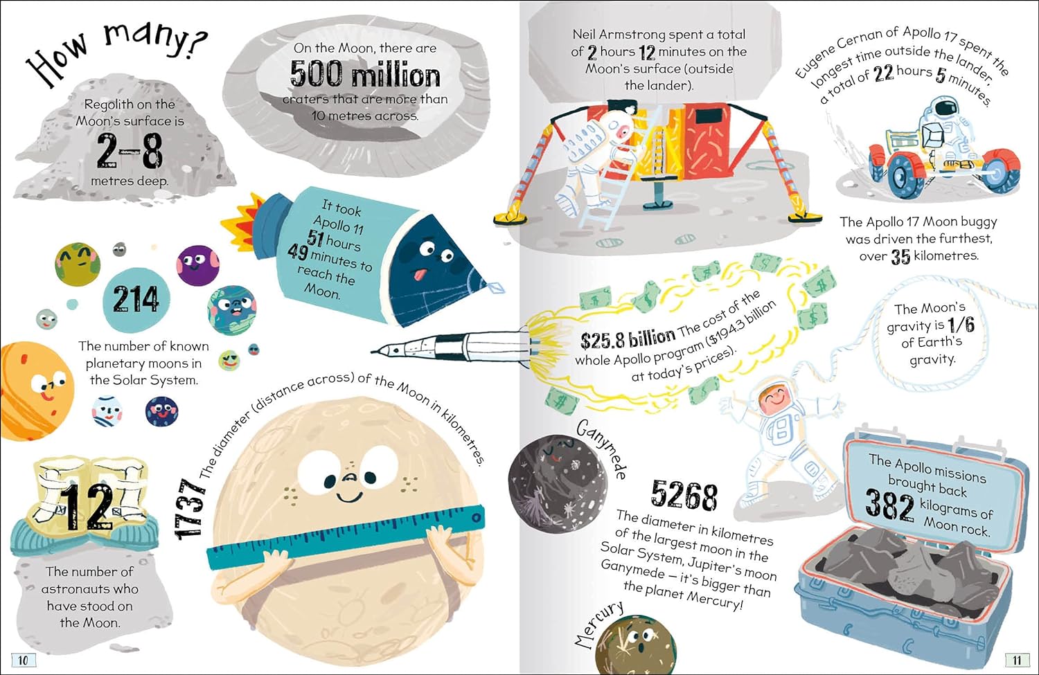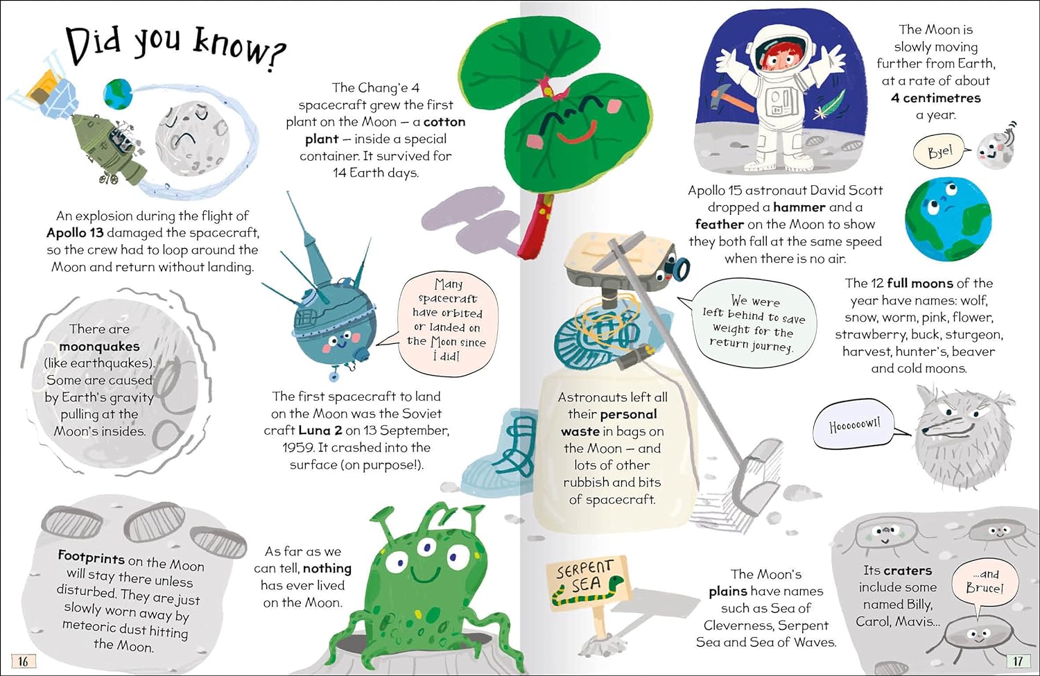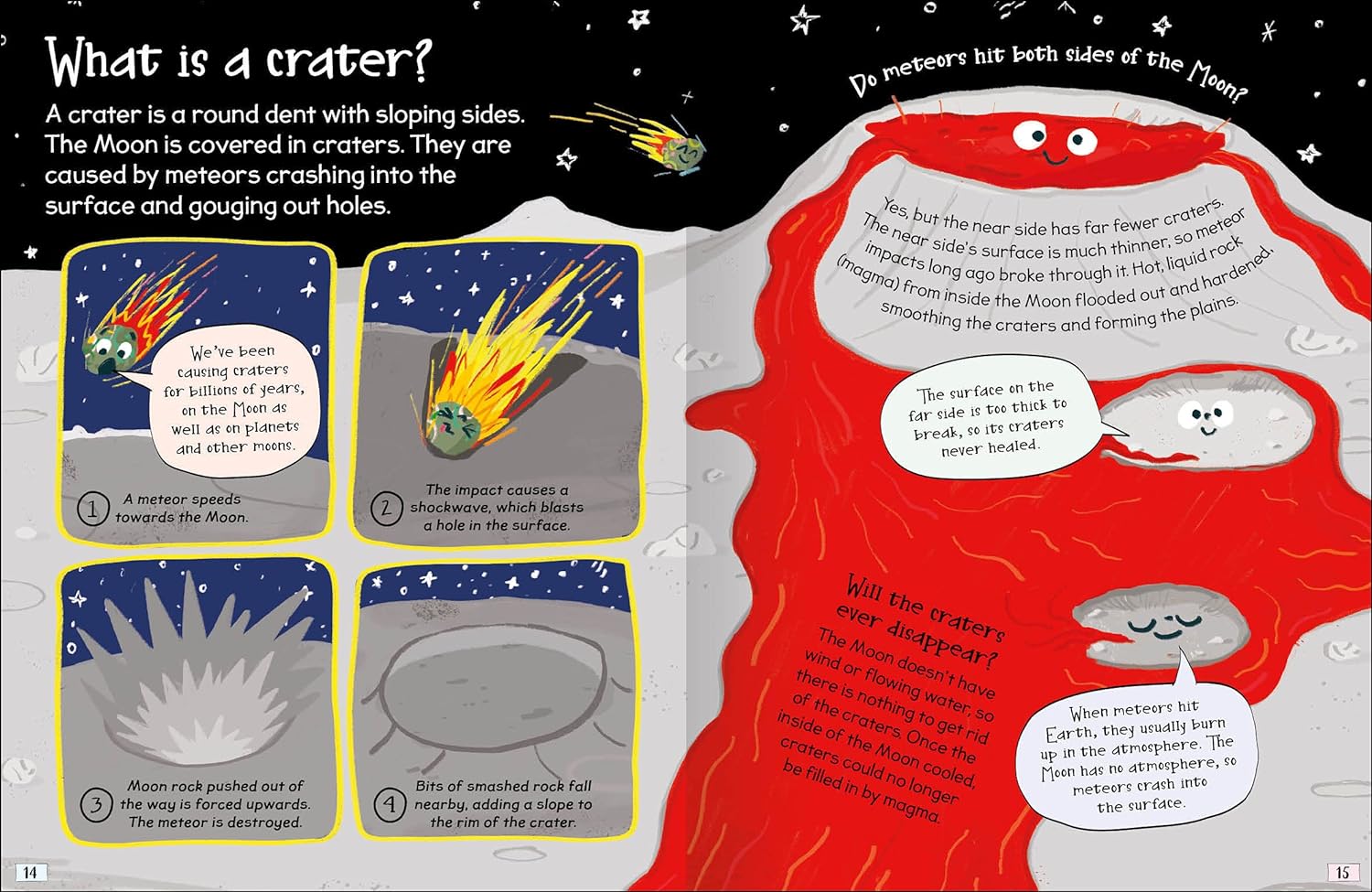 This humorous twist on the popular Q & A format takes a sideways look at all that is weird and wondrous about our Moon. Quirkily illustrated characters and playful text reveal the amazing answers. Find out what it's like to walk on the Moon, why it's covered in so many craters, and how it moves the oceans on Earth.