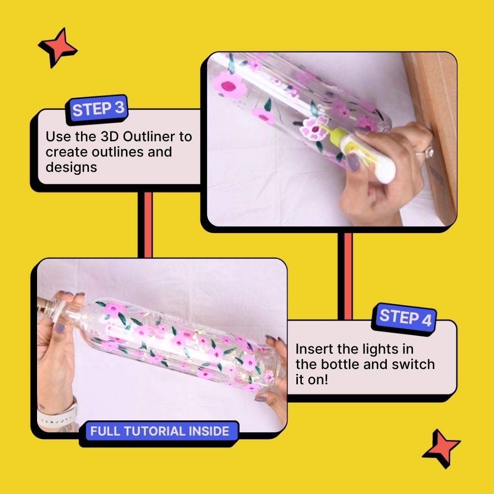 Create the prettiest light bottles ever with our DIY Light Bottle Painting Kit! ✨ Showcase your creativity of a fun glass bottle surface and create marvels. With this kit, you can paint and decorate your own upcycled bottles and infuse magic in your creation by adding light in it! 🌈