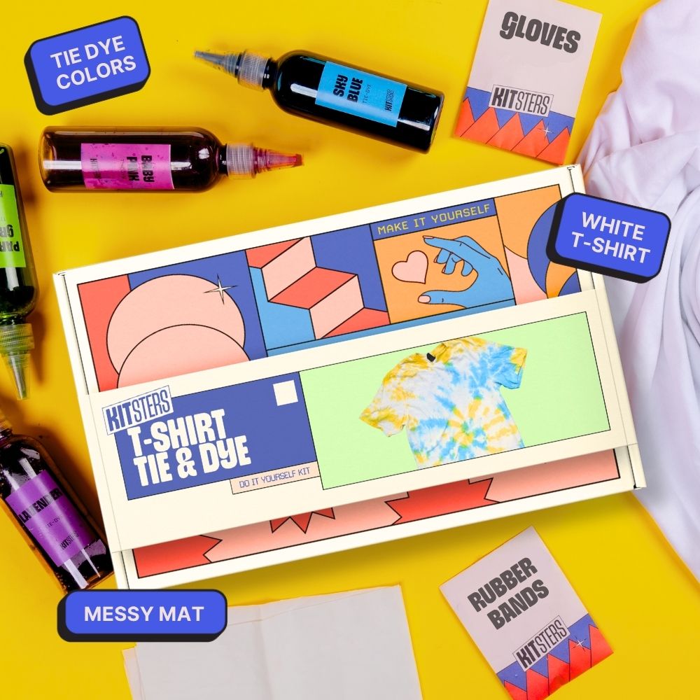 1. Complete Kit: Includes a t-shirt in your size, along with all the materials needed for tie-dyeing.