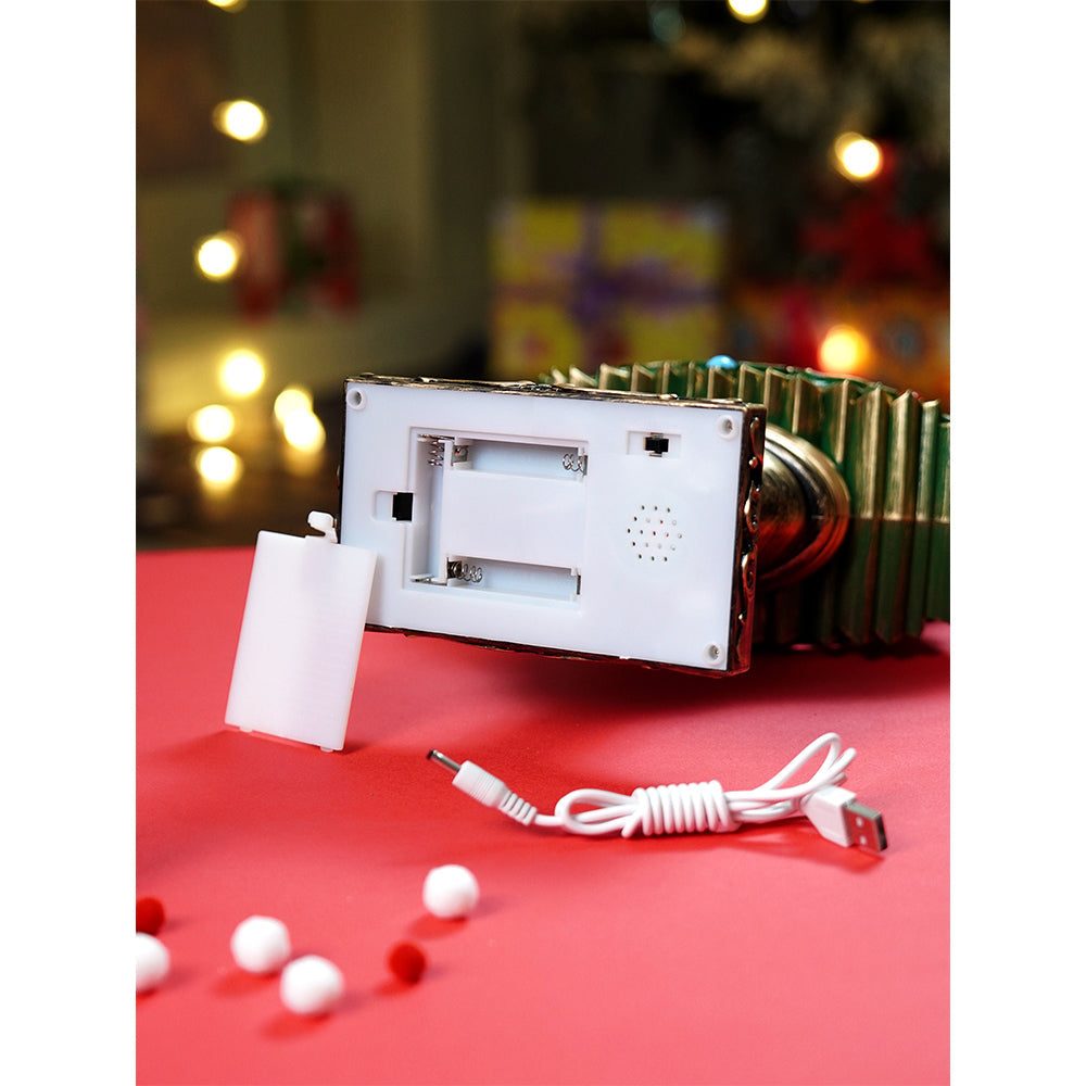 1. Enchanting Musical Lit Décor: This elegant Gold & Green Christmas Tree themed Musical Lit Décor beautifully captures the magic of the festive season. Designed in rich green tones with golden detailing, vibrant baubles, and a star topper, it brings the charm of a classic Christmas tree to life with a luxurious touch.
