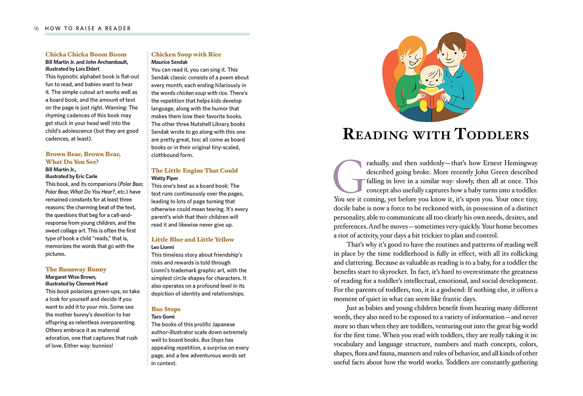 Divided into four sections, from baby through teen, and each illustrated by a different artist, this book offers something useful on every page, whether it’s how to develop rituals around reading or build a family library, or ways to engage a reluctant reader. A fifth section, “More Books to Love: By Theme and Reading Level,” is chockful of expert recommendations. Throughout, the authors debunk common myths, assuage parental fears, and deliver invaluable lessons in a positive and easy-to-act-on way.
