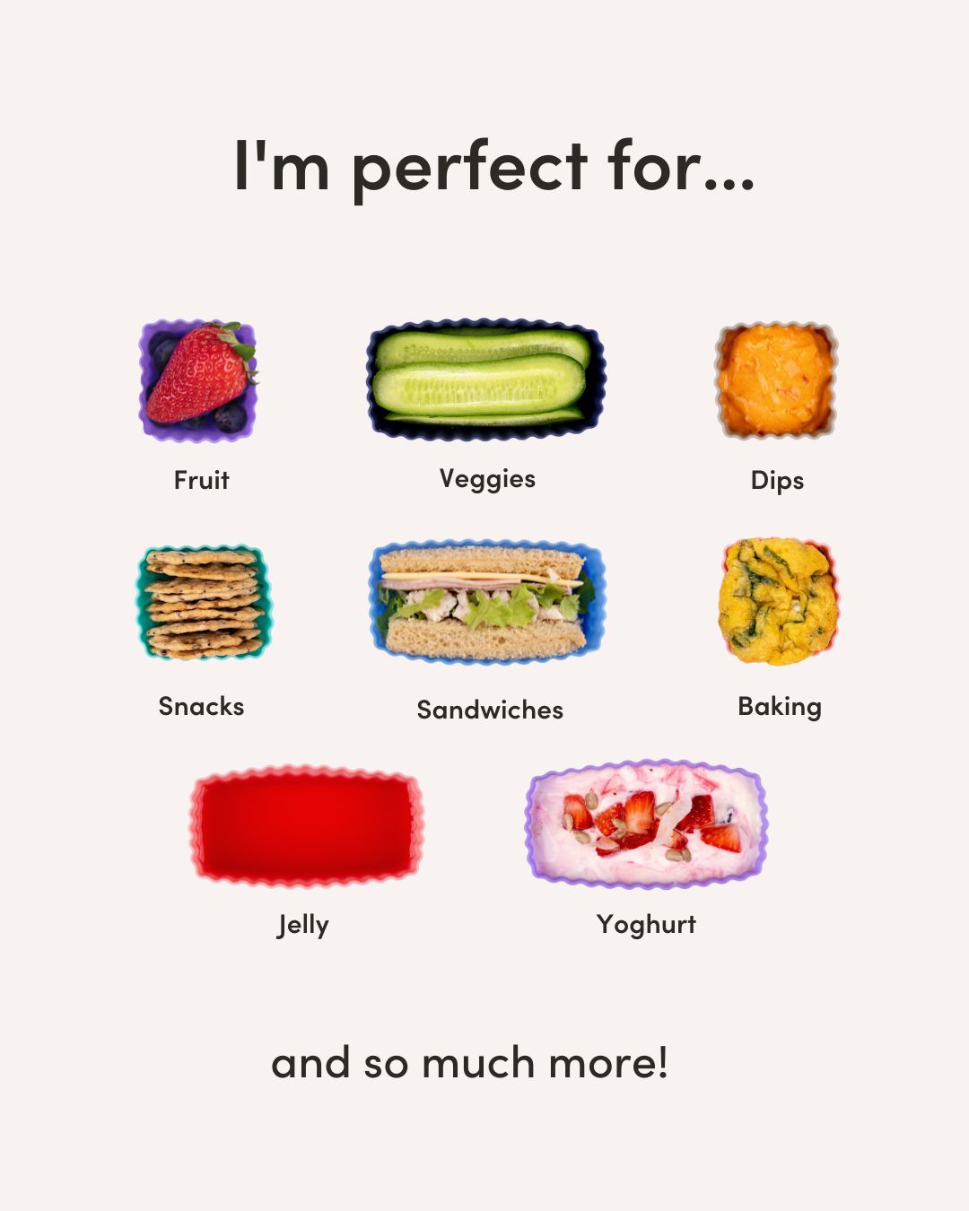 The mixed packs contain 1 rectangle cup and 2 square cups and come in a range of colours. These cups are a great fit for our all sizes of our Bento Lunch Boxes (Bento Two, Three, Five and Three+)