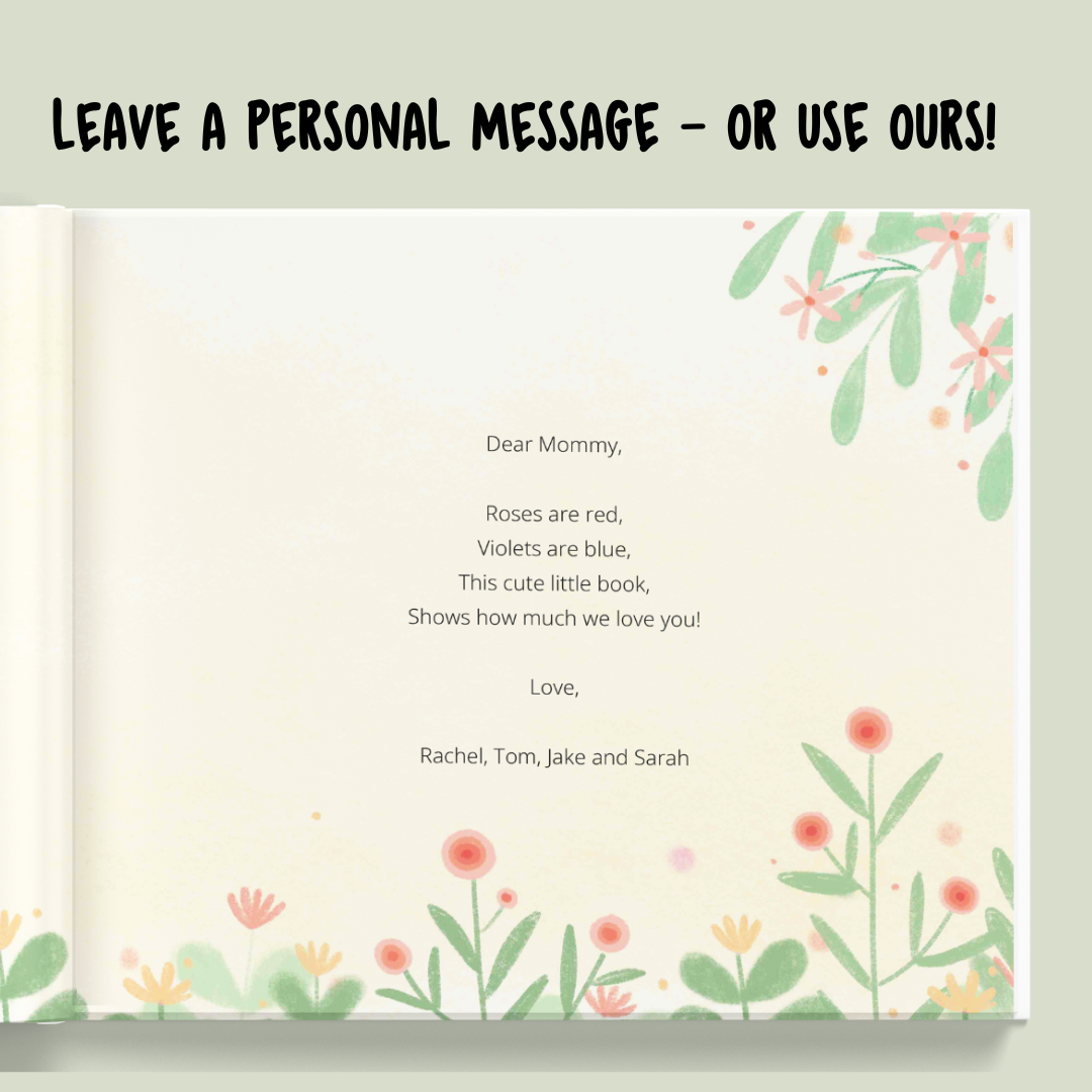 A heartwarming journey of love and laughter, perfect for bedtime cuddles and shared moments. This personalized Mom and Us book is not only a delightful gift for any occasion but also a beautiful way for children to express and tell her just how much they love her!