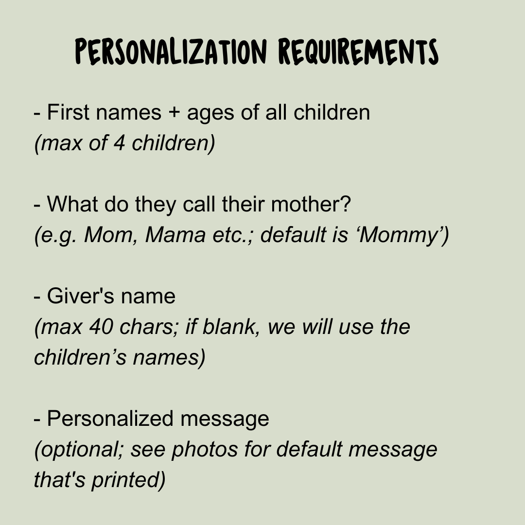 - Perfect Gift for Mother's Day: What better way to celebrate the love between Mom and child than with a personalized journey, capturing all the precious moments and memories they share, a cherished keepsake for years to come!