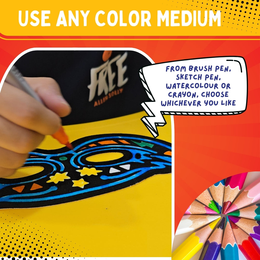 • Works with All Coloring Tools Compatible with crayons, markers, gel pens, and sketch pens. Velvet outlines help kids stay inside the lines for confidence-boosting results.