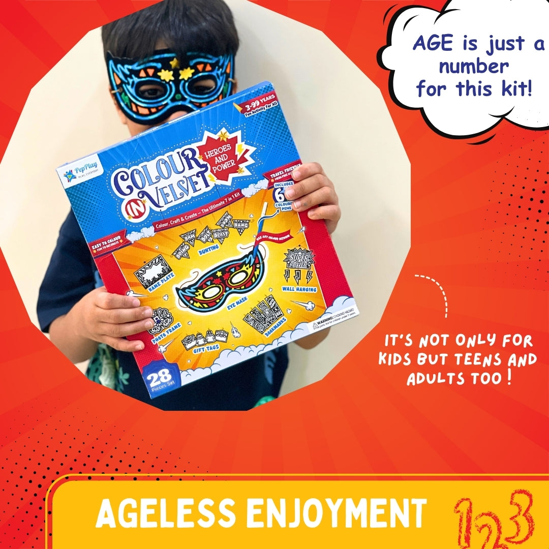 Packed with 6 fun velvet crafts like a name plate, mask, photo frame, and more, this mess-free coloring activity inspires imagination, independence, and hands-on learning. Great for birthdays, travel, return gifts, or simply screen-free fun, this kit transforms any boy into his own superhero-with the power to create!