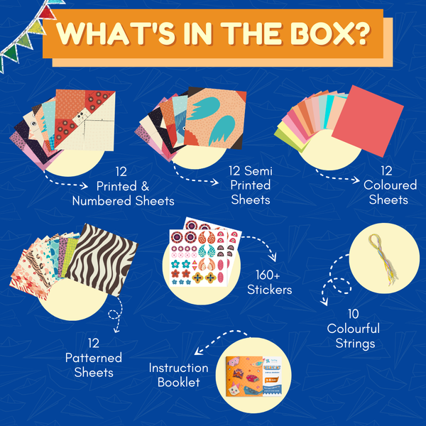 • 4-Level Folding Journey for Every Age & Ability Helps kids progress step-by-step: 12 numbered & dashed-line papers for guided beginner learning 12 semi-printed sheets to build folding confidence 12 colorful papers to experiment, decorate & explore freely 12 patterned designer papers to create beautiful final models