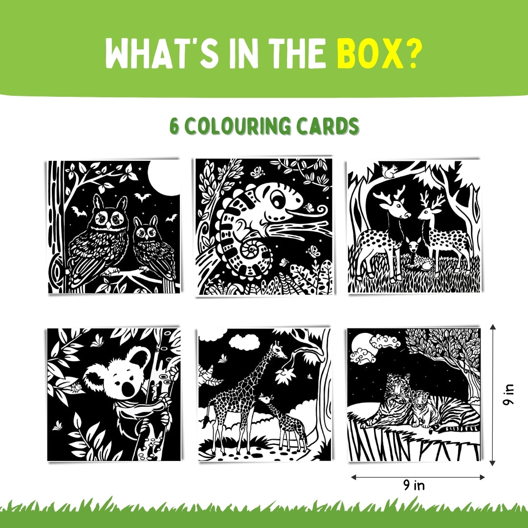 • Velvet Card Set: The PepPlay Velvet Cards - Wild Theme Room Décor comes with five enchanting velvet cards. Each card features intricate designs printed with super-fine black velvet on special white card-stock, ensuring a high-quality coloring experience.