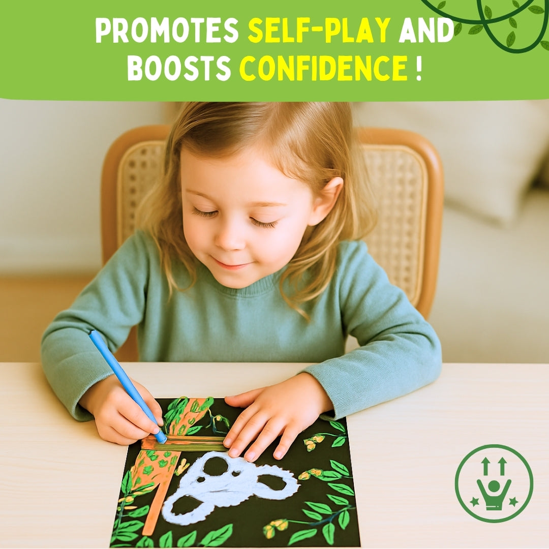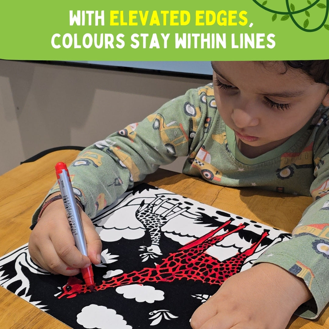 Kids can go on an adventurous ride with our Wild theme velvet coloring cards to learn about the forest animals with PepPlay’s unique and engaging designs that are printed with super-fine black velvet on special white card-stock. The set includes 5 coloring cards that feature Wild scenes.
