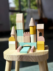 This beautiful wooden block set is a timeless addition to your child’s playtime. Carefully handcrafted from high-quality solid wood, each block comes in a variety of sizes and shapes, thoughtfully designed to inspire creativity. With a smooth, non-toxic pastel finish, these blocks are safe for little hands, combining elegance with functionality.